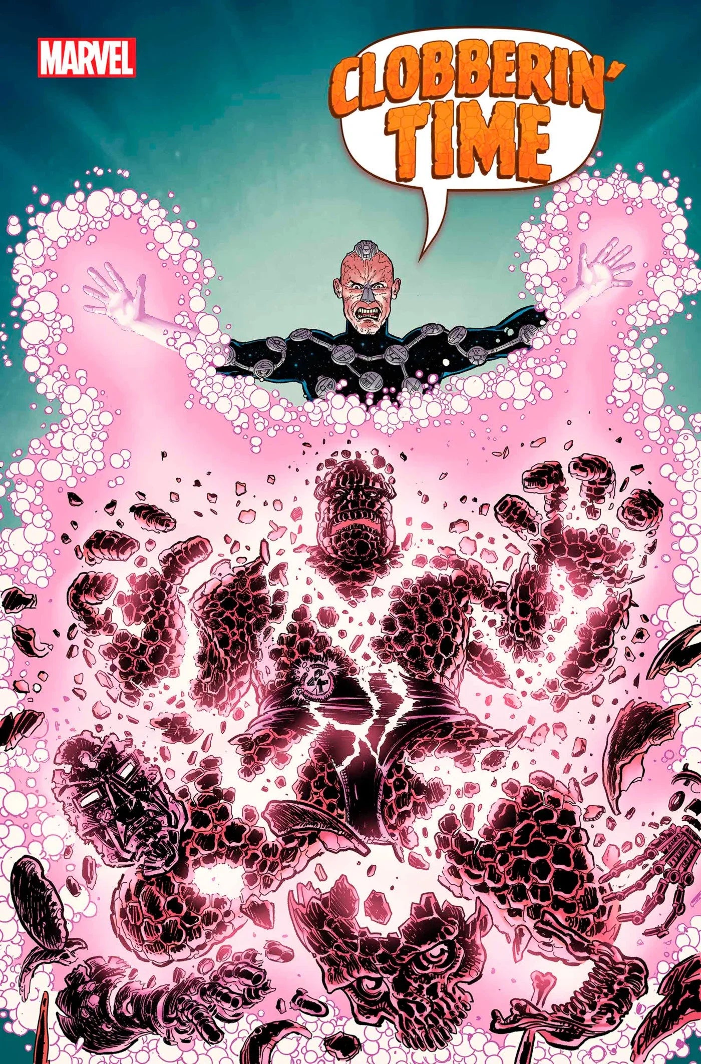 OGDU FRAIZE's plan is almost complete, he has reverse engineered every item of power across the Marvel Universe's timestream to create the PSYCHOPOMP machine, a device that will steal the creation energy of the nascent GALACTUS and the SENTIENCE of the UNIVERSE at the moment of the BIG BANG. The THING, DOCTOR DOOM and TUVAH TU are an unwilling audience to the universe's re-making. That is, unless they can get free...