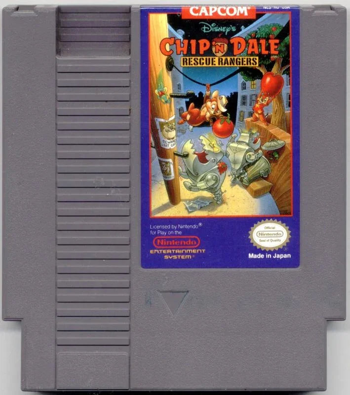 Chip and Dale, those pint-sized but courageous Disney detectives, have received another desperate call for help: The evil Fat Cat has kidnapped Gadget... his sinister goal - to take over the city!! Join the Rescue Rangers on their exciting search through the darkest depths of slimy sewers to the electrifying heights of live telephone wires! Play alone or with a friend to locate Fat Cat's headquarters and thwart his diabolical scheme! Fat Cat's Bad Guys: Can you escape them or do you stand and fight? Deadly Attacking Killer Bees: Can you out run them or do you let them bite? Rabid Robot Rats and Mechanical Dogs: Are you saved from their savage jaws or do you bite them back?
