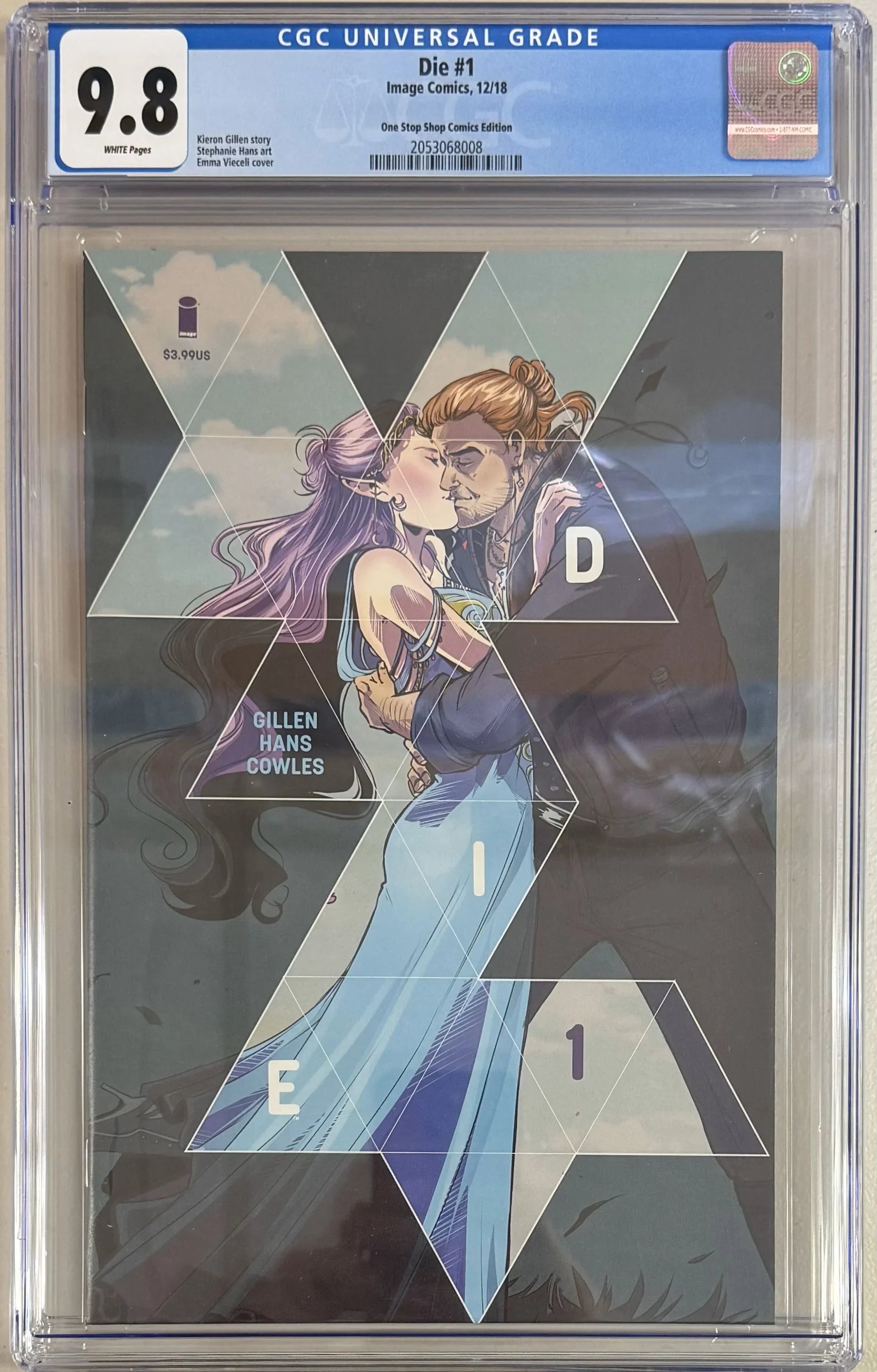 CGC Cert # 2053068008 Title Die Issue 1 Issue Date 12/18 Issue Year 2018 Publisher Image Comics Variant One Stop Shop Edition Grade 9.8 Page Quality WHITE Grade Date 08/01/2019 Grade Category Modern Art Comments Kieron Gillen story Stephanie Hans art Emma Vieceli cover