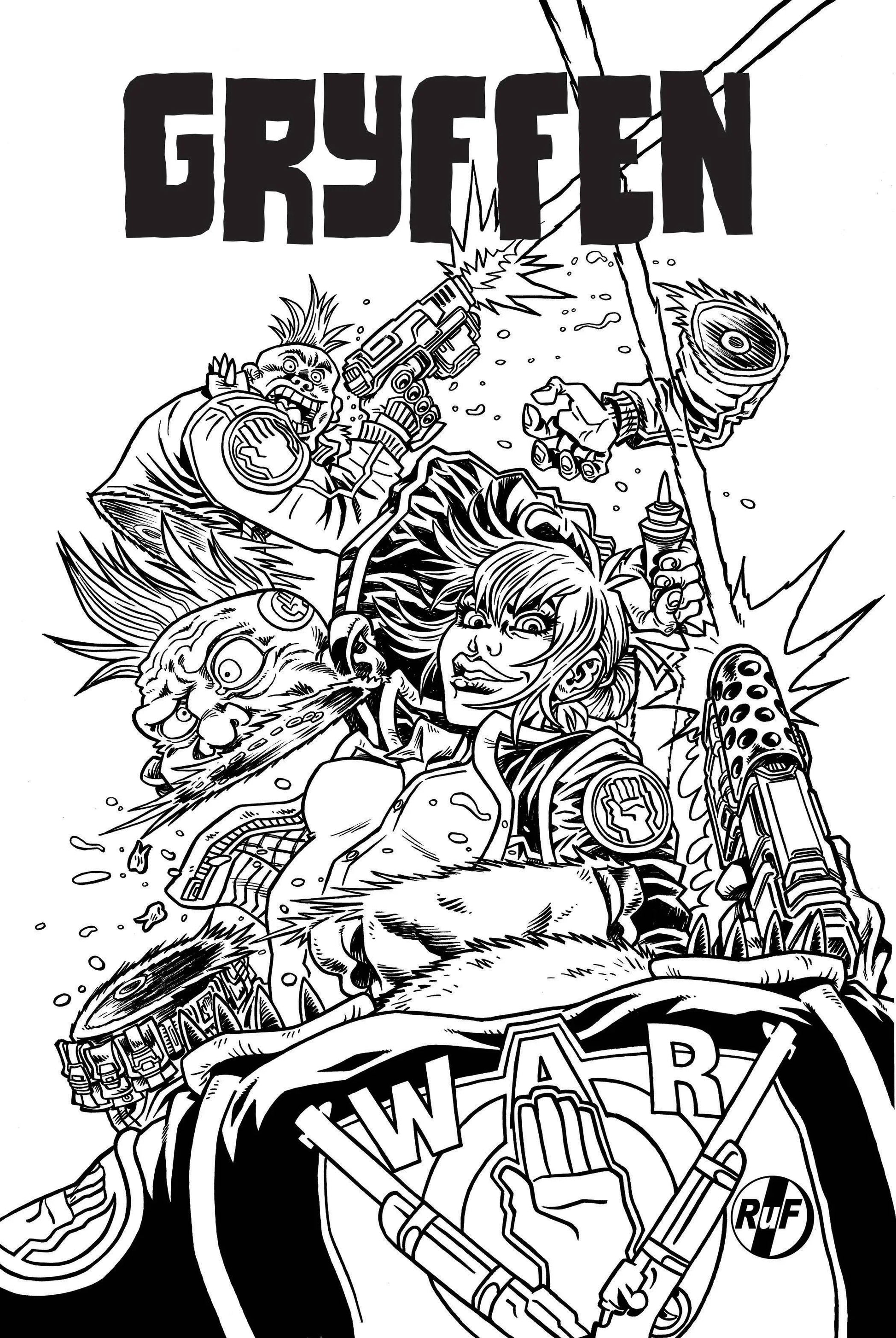 Gryffen #1 main cover by Rufus Dayglo offered as a black and white variant.