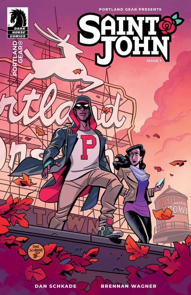 Cynical Manhattan writer Tori Slate travels to Portland, Oregon, to track down the enigmatic Saint John—a masked man who roams the city doing good deeds for strangers, appearing at random and vanishing without a trace. Who is he? Why does he do it? And what is his seemingly supernatural connection to the City of Roses? Tori aims to put these questions to the man himself . . . unaware that the answers will change her life forever. A distinctly PDX miniseries from Eisner-nominated cartoonist Dan Schkade (Lavender Jack, The Spirit) and Portland native creator Brennan Wagner (Grendel, Batman), produced with—and featuring the fashion of—Portland Gear. • In a partnership with groundbreaking clothing brand, Portland Gear, Dark Horse Comics is proud to present the Rose City’s very own superhero, Saint John!