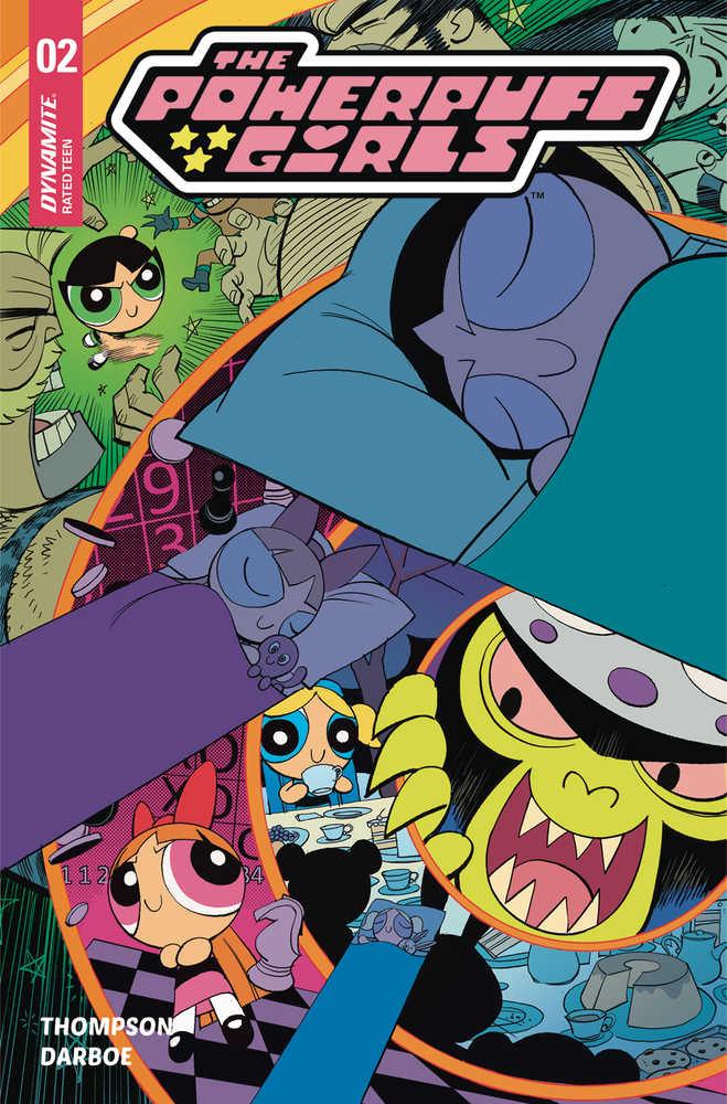 In this issue's panel-busting adventure, simian arch-villain Mojo Jojo lures Blossom, Bubbles, and Buttercup to the park for a super-powered throwdown. But rather than doing battle, he plants micro-devices on their adorable little necks instead - clever little gizmos that will let him sneak inside their dreams and learn their secret combat strategies! DANG YOU AND YOUR DEVICES, MOJO JOJO! Will these high-tech hijinks finally give Mojo the edge over the Powerpuff Girls' innate, Chemical X-enhanced goodness? Find out in issue #2's page-turning tale "What Dreams May Come!" from Eisner-winning superstar writer KELLY THOMPSON (Birds of Prey, Scarlet) and acclaimed artist KAREN S. DARBOE (Blade) - featuring unstoppable cover cuteness from DARBOE, LEONARDO ROMERO, PAULINA GANUCHEAU, NICOLETTA BALDARI, and KEN HAESER! ALL COVERS CARDSTOCK