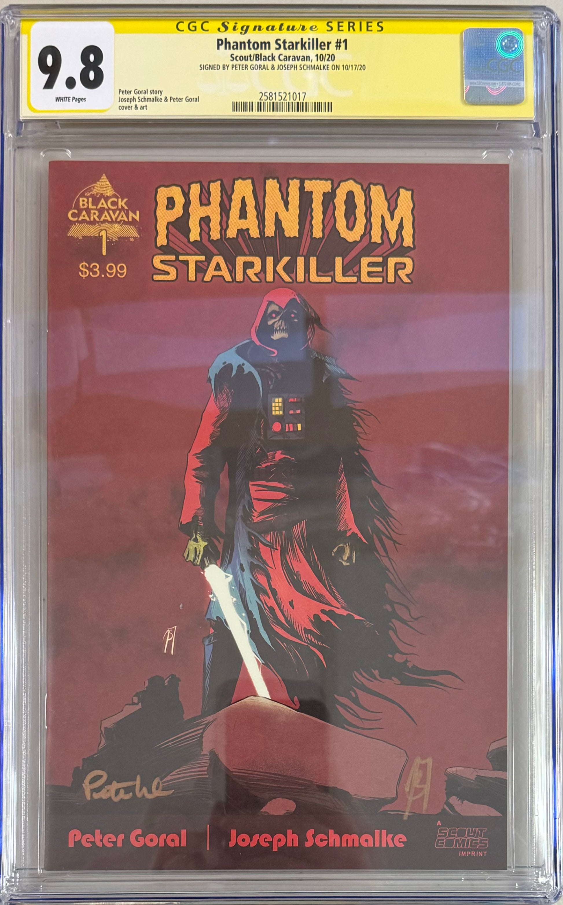 CGC Cert # 2581521017 Title Phantom Starkiller Issue 1 Issue Date 10/20 Issue Year 2020 Publisher Scout/Black Caravan Grade 9.8 Page Quality WHITE Grade Date 01/13/2021 Grade Category Signature Art Comments Peter Goral storyJoseph Schmalke & Peter Goralcover & art Grader Notes Unavailable Signatures SIGNED BY PETER GORAL & JOSEPH SCHMALKE ON 10/17/20