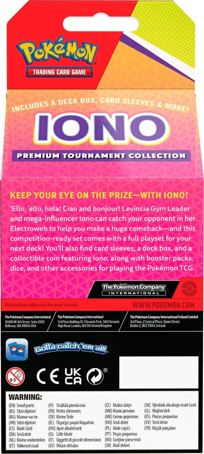 ’Ello, ’ello, hola! Ciao and bonjour! Levincia Gym Leader and mega-influencer Iono can catch your opponent in her Electroweb to help you make a huge comeback—and this competition-ready set comes with a full playset for your next deck! You’ll also find card sleeves, a deck box, and a collectible coin featuring Iono, along with booster packs, dice, and other accessories for playing the Pokémon TCG.