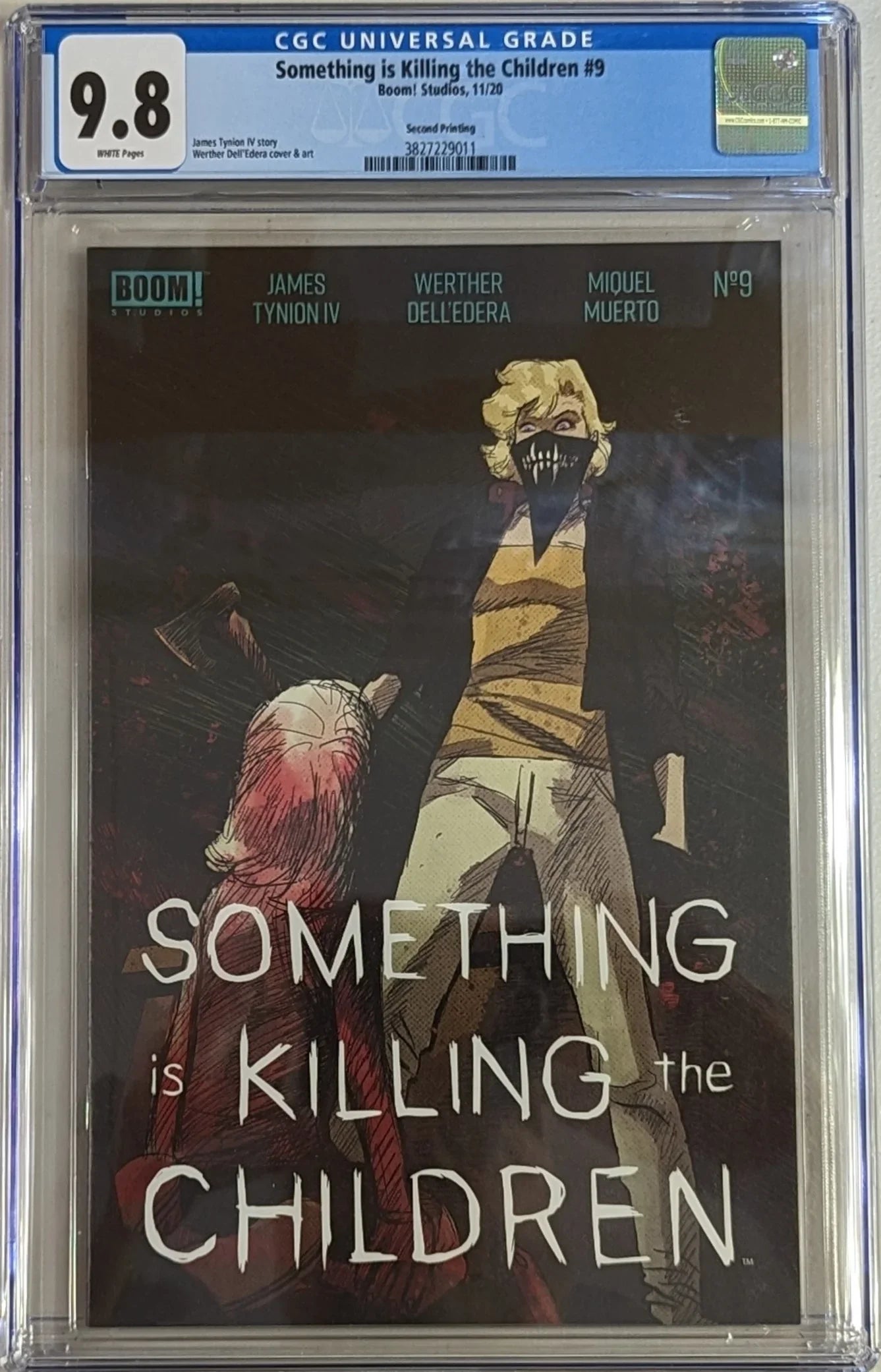 Title Something is Killing the Children Issue 9 Issue Date 11/20 Issue Year 2020 Publisher Boom! Studios Variant Second Printing Grade 9.8 Page Quality WHITE Grade Date 06/24/2021 Grade Category Modern Art Comments James Tynion IV story Werther Dell'Edera cover & art