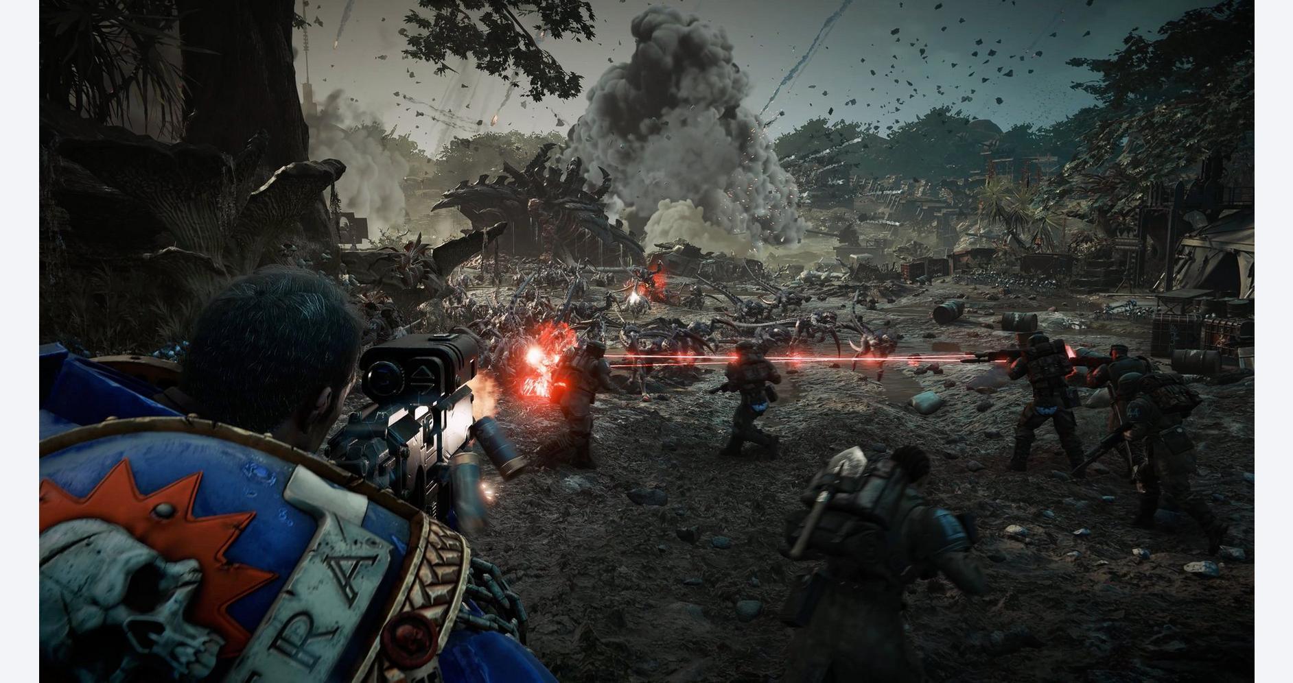 Heed the call of battle. For there is only war. The galaxy is in peril. Entire worlds are falling. The Imperium needs you. In Space Marine 2, Mankind is in peril. The Space Marines are needed to unleash their deadly abilities and an arsenal of weaponry to obliterate the relentless Tyranid hordes as you uncover dark secrets and drive back the everlasting night to prove your ultimate loyalty to humanity. Heed the call of battle. For there is only war.