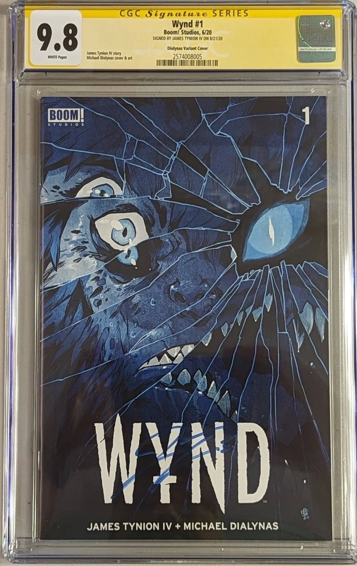 CGC Cert # 2574008005 Title Wynd Issue 1 Issue Date 6/20 Issue Year 2020 Publisher Boom! Studios Variant Dialynas Variant Cover Grade 9.8 Page Quality WHITE Grade Date 10/20/2020 Grade Category Signature Art Comments James Tynion IV story Michael Dialynas cover & art Grader Notes Unavailable Signatures SIGNED BY JAMES TYNION IV ON 8/21/20