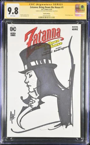 Title Zatanna: Bring Down the House Issue 1 Issue Date 8/24 Issue Year 2024 Publisher D.C. Comics Variant Sketch Edition Grade 9.8 Page Quality WHITE Grade Date 11/04/2024 Grade Category Signature Art Comments Mariko Tamaki story Javier Rodr�guez art Key Comments Partial blank cover. Grader Notes CGC Signature Series witnessed the Adam Hughes signing on 8/10/24. Signatures SIGNED & SKETCH BY ADAM HUGHES ON 8/10/24